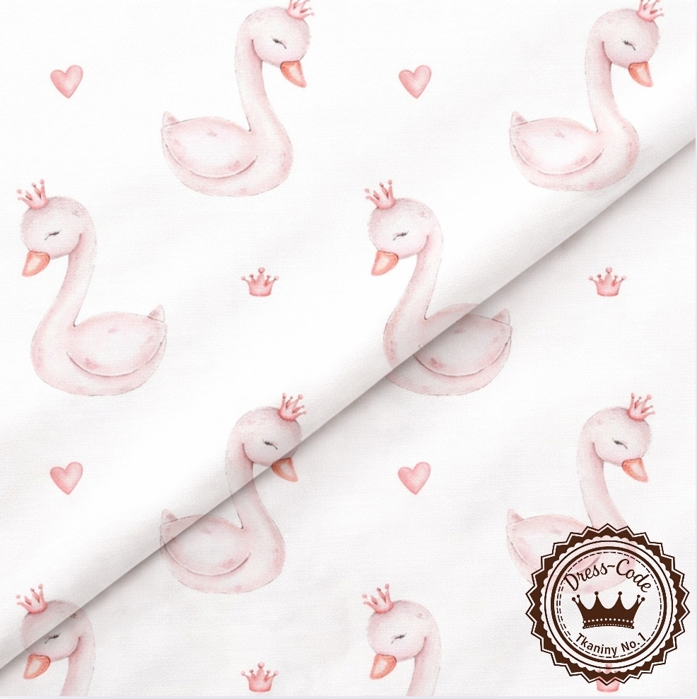 Łabędzie i serduszka – Bawełna Premium
