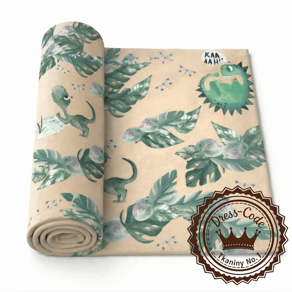 Napisz pierwszą opinię o „Dino i Monstery zielone na kawowym tle – Dresówka pętelka Premium+, Druk cyfrowy”