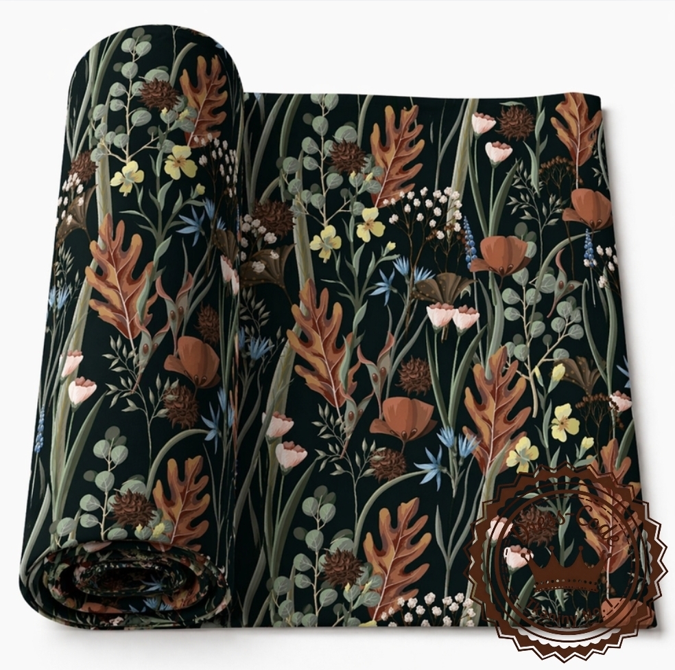 Napisz pierwszą opinię o „Jesienna łąka na czarnym tle- Dresówka pętelka Premium+, Druk cyfrowy”
